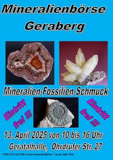 Es gibt Gutes zu berichten. Bald findet auch dieses Jahr die Börse für Mineralien, Fossilien und Bergbauzubehör wieder statt. Am 13.04.2025 von 10 bis 16 Uhr öffnet die kleine Geratalhalle wieder für Interessierte aus nah und fern.