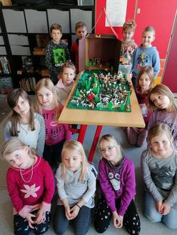 In unserem Hortraum bauten wir einen Bauernhof mit großem Freigelände auf. Viele Haustiere wurden hier in Koppeln, Gehegen und Ställen untergebracht. Natürlich durften die landwirtschaftlichen Geräte, die man auf einem Bauernhof findet, nicht fehlen. Jeden Nachmittag spielten die Kinder damit. Sie bauten das Gelände um, reparierten Zäune, holten Stroh und Heu und versorgten die Tiere damit.