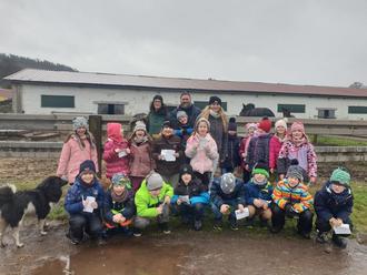 Am letzten Tag unseres Projektes ging es zu Wilhelms Eltern auf den Bauernhof. Hier wurden wir zur Mittagszeit mit köstlicher Pizza, Wienern und leckeren Getränken empfangen. Mit einer Tierrallye ausgestattet, ging es dann auf Entdeckungstour: Wie viele Tiere von jeder Art sind hier untergebracht und wie nennt man die Mitglieder der jeweiligen Tierfamilie. Alle Tiere durften sogar gestreichelt werden. Die mutigsten Kinder trauten sich sogar in die Pferche und streichelten die Tiere.