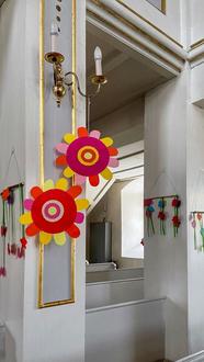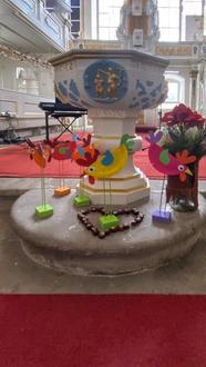 Die Besucher waren durchweg begeistert von diesem Konzert und der damit verbundenen Idee. Wenn man die Kirche betreten hat, strahlte diese in bunten Farben, denn die Kinder der Kita hatten fleißig gebastelt. Das Motto des Benefizkonzertes war „Kinderhände machen die Welt bunter“ und getreu diesem Motto gab es viele tolle Bastelarbeiten zu bestaunen.