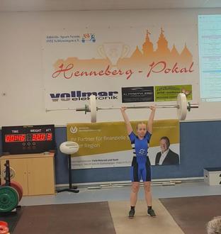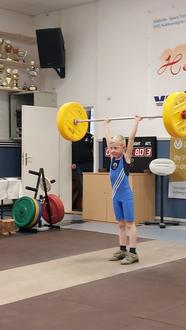Anton Geuther lieferte sich im Jahrgang 2015 leichte Gruppe einen packenden Wettkampf mit Ragnar Schneider vom Ohrdrufer SV. Anton gewann das Reißen und führte lange im Stoßen. Die Entscheidung im dritten Versuch. Während Anton leicht nachdrückte meisterte Ragnar seinen Versuch. Anton führte noch mit 2,93 Punkten aber das reichte nicht da Ragnar im Schlussweitsprung 11 cm weiter sprang. So wurde er Zweiter. Fünfter wurde Jakub Kulaj vor Friedrich Hoffmann.