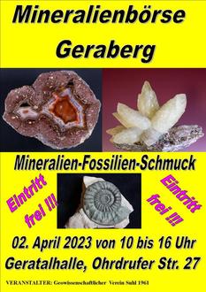 Der Eintritt ist, wie immer bei den Börsen des Geowissenschaftlichen Vereins Suhl 1961, frei. Parkplätze sind ausreichend vorhanden.