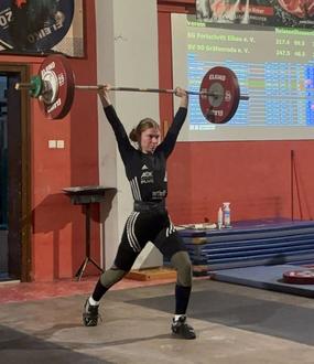 Gräfenroda wollte nun eine neue Saisonbestleistung und gewohnt stark begann man die Versuche. Für Lotta Frank kam die nächste große Hoffnung des SV 90 die erst 15-jährige Franziska Erbert. Diese schaffte nach 78 kg im ersten Versuch gleich mal den neuen Landesrekord von 80 kg im Zweiten. Nur der Dritte mit 82 kg war diesmal noch zu schwer. Lina Fischer wiederum sehr sicher mit 82 und 86 kg. Auch Simona Jerabkova zeigte mit 100 und 105 kg eine starke Leistung. Gräfenroda führte mit 184 zu 153,5 Punkten.