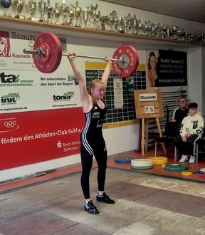 Damit gewann sie überlegen vor der Suhlerin Lina Merk. Den Kampf um Platz 3 entschied Alexia Kullmann mit der neuen Bestleistung von 50 kg im Stoßen. Mia Pabst wurde Vierte mit einer Steigerung ihrer Bestleistungen um insgesamt 10 kg auf 41 bzw. 46 kg.