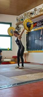 Lotta Frank Jahrgang 2009 stellte mit einem ungewöhnlich starken Reißen über 54, 57 und 59 kg gleich einen neuen Landesrekord auf und das bei nur 49 kg Körpergewicht. Im Stoßen wollte Sie nun alles, was ihr an diesem Tag auch gelang. Nach 62 kg schaffte sie auch die 66 kg Bestleistung und Landesrekord. Und unter tosenden Beifall war sie geschafft die langersehnte Norm für die Jugend EM und das im Juli in Madrid wo andere gerade ihren Urlaub verbringen. Natürlich gewann sie damit auch die Jahrgänge der Jugend 2008/2009.