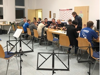 Gut gestärkt wurde am Samstagabend schließlich bis 19 Uhr geprobt. Anschließend ließen wir den Abend mit leckerem Essen ausklingen, welches Steffen Weber-Freytag organisierte. Beim gemütlichen Zusammensein kam es zu regem Erfahrungsaustausch unter den Musikern.