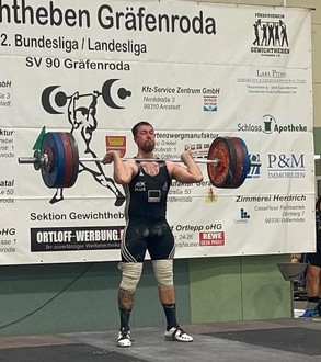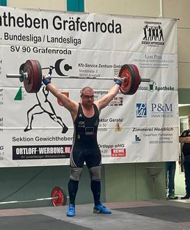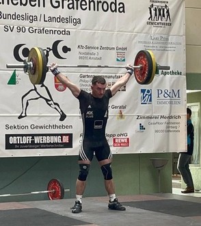 Lucas Müller einer der besten deutschen Heber schaffte 190 kg im Stoßen und insgesamt 164,6 Relativpunkte.