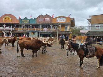 | 623: | Bei der Abschlussshow in der Westernstadt kamen auch die Büffel zum Einsatz |
