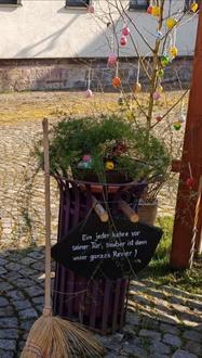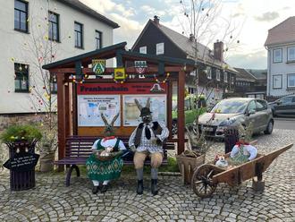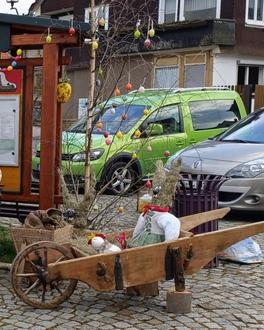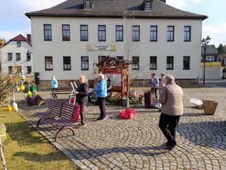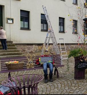 Nun ist es soweit, um unsere Hasenfamilie zum Schauplatz zu bringen. Es gibt wieder gute Ideen den Plan österlich aussehen zu lassen. und von einige Frankenhainern wurden auch Eier gebraucht, um unsere Birken schön zu schmücken.