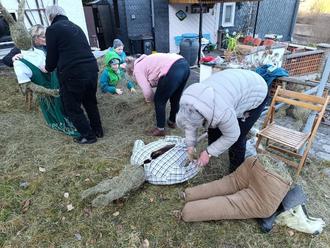 Ich habe sie gesehen, in dem Garten, in der Bahnhofstraße 8, von Inge Graf. Sie entstanden Stück für Stück. Das Heu wurde von der Luke heruntergelassen und schon ging es los. Ein Gewüsel von den Osterhasenfrauen Renate, Inge, Gisela, Ilona, Monika, sowie zwei Osterhäschen Emil und Paul.