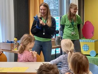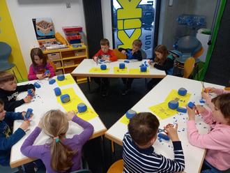 Nachdem wir uns in der Lobby angemeldet haben, begrüßten uns 3 nette Mitarbeiterinnen des KiKAs und nahmen sich viel Zeit für uns. Herzlichen Dank an dieser Stelle für die liebevolle Vorbereitung der Bastelangebote und die Betreuung!
