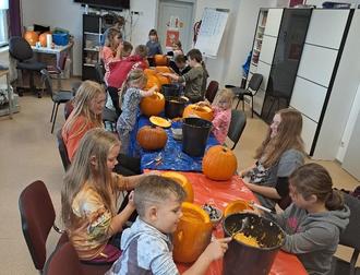 Angefangen mit der großen Kürbisschnitzaktion am 18.10.2023. 21 Kinder haben, die zuvor von der Frauengruppe organisierten Kürbisse, erst ausgeschält und dann mit viel Kreativität verschiedene gruselige Gesichter in das Gemüse geschnitzt. Weiter ging es am Montag, dem 23. Oktober mit der Näh-AG.