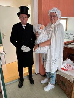 Herr Reimar Traute aus Gillersdorf, Enkel der letzten hier wirkenden Hebamme Elise Wagner, geb. Klett, kam im originalen Hochzeitsfrack seines Großvaters. Elise Wagner wohnte in Wildenspring und betreute Friedersdorf mit. Begleitet wurde er von Silvia Himmelreich als Amme. Die mitgebrachten Geschichten, Unterlagen und Fotos seiner Großmutter weckten bei den Gästen großes Interesse.