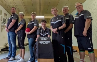 Die Kegler der SG Altenfeld traten erstmals mit neuen Trikots an und bedanken sich hiermit bei den beiden Sponsoren und dem Organisator für das gut funktionierende und problemlose Besorgen der Trikots.