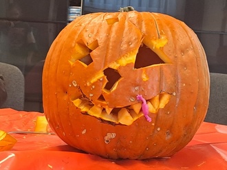 Am Ende bekamen alle den Tipp mit nach Hause, die Kürbisse mit Haarspray zu konservieren und jetzt steht dem Halloweenvergnügen nichts mehr im Weg.