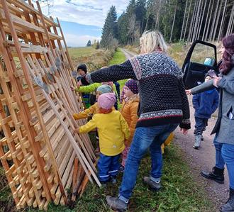 So wurden am Freitag, dem 25.10.2024, bei herrlichem Oktoberwetter 30 Roteichenpflänzlinge von den Kindern gemeinsam mit ihren Großeltern, am Wichtelpfad in die Erde gebracht. Es war ein Fest! Alle, Kinder, Eltern, Großeltern, Gäste und Erzieher waren ausnahmslos begeistert!
