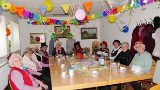 Die Neustädter Seniorinnen finden sich wöchentlich immer montags im Rentnertreff ein, so auch am Rosenmontag. Alle von 80 bis über 90 Jahren waren dieses Mal dabei, dem Anlass entsprechend natürlich mit bunten Hütchen und in bester Faschingslaune.