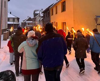 Der große Abschluss der Dreharbeiten für das ganze Dorf: „Abwintern“ mit Fackelumzug an der Feuerwehr