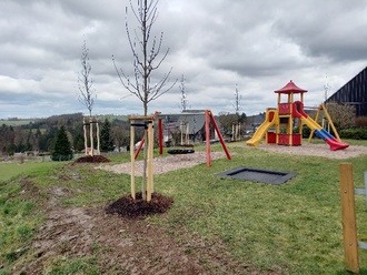Auf dem Spielplatz in Allersdorf wurden in den vergangenen Tagen neue Bäume gepflanzt. Diese Bäume sollen zukünftig den Spielplatz verschönern aber auch als Schattenspender dienen.