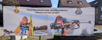 Herschdorf begrüßte Lena mit einem großen Willkommensplakat in der Ortsmitte und Ortschaftsbürgermeister Jan Ludwig zählte zu den vielen Gratulanten im Heimatort.