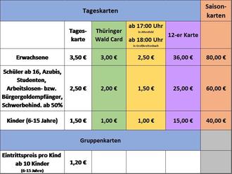 | - | Aktive Feuerwehrmitglieder der Freiwilligen Feuerwehr der Stadt Großbreitenbach erhalten eine 12-er Karte je Saison kostenfrei. |