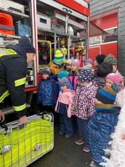 Alles Wissenswerte rund um die Feuerwehr ist immer interessant. Wann und wie wähle ich einen Notruf? Was muss ich beim Umgang mit Feuer beachten und wie verhalte ich mich bei Notfällen richtig? All das kennen und können unsere kleinen Feuerwehrleute schon. Ein besonderes Erlebnis bildete dann der Besuch bei der Böhl`ner Feuerwehr. Hier konnten sie ihr Wissen zeigen und Neues erwerben.
