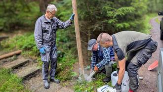 Innerhalb von nur zwei Tagen wurden durch die Kollegen der Naturpark-Meisterei Thüringer Wald am 04. und 05.06.2025 in Großbreitenbach, Böhlen, Gillersdorf, Willmersdorf und Herschdorf insgesamt 16 Gabelwegweiser sowie drei Rahmen für Schautafeln aufgestellt.