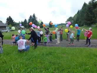 Den krönenden Abschluss bildete das Ballonfliegen im Freien. Die heliumgefüllten Luftballons, ein jeder mit einem Grußkarte versehen, wurden in die Luft entlassen und waren schnell aus den Augen in Richtung Süden verschwunden.