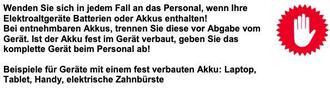 Beschädigte Batterien und Akkus werden ebenfalls zurückgenommen und sind aufgrund der erhöhten Explosionsgefahr einzeln zu verpacken (z.B. Plastik-/PE-Beutel) und beim Personal ebenfalls persönlich abzugeben.