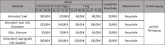 Der Stadtrat der Landgemeinde Stadt Großbreitenbach beschließt die 1. Änderung der privatrechtlichen Entgeltordnung der Benutzungsordnung für gemeindliche Gebäude, Veranstaltungsräume und Mehrzweckhallen der Stadt Großbreitenbach entsprechend der Aufstellung: