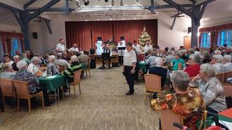 Thomas hatte mit seiner "Brigade" einige schöne Lieder vorgetragen, die toll bei unseren Gästen ankamen. Wie immer sorgte Ewald für weihnachtliche Stimmung zum Kaffee und Kuchen. Danach forderte Ewald zum Tanz auf, was gut angenommen wurde.