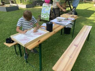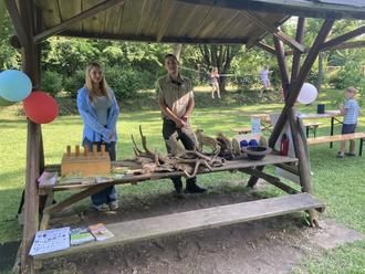 Auf dem gesamten Schulhof gab es danach zahlreiche Stände und Mitmachaktionen. Vom Bastelzelt des Zwiwelvereins über Stationen des DRK, der FFW Schönstedt, des Nationalparks Hainich bis hin zu Glitzertattoos war für jedes Kind etwas dabei. Die Eltern hatten ein reichhaltiges Kuchenbuffet vorbereitet, und der Förderverein versorgte alle Gäste mit Würstchen, Softeis und kühlen Getränken.