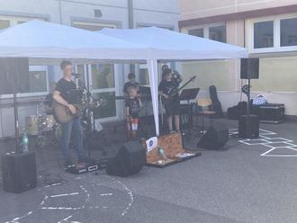 Besondere Aufmerksamkeit zog die Schülerband „Scoolfighters“ auf sich, die Teenager brachten den Schulhof mit einem tollen Mix an Liedern richtig in Schwung.