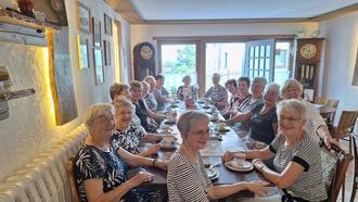 Am 25. Juli besuchten 20 Landfrauen die Bäckerei Adam in Craula. Einige Landfrauen kannten diese Örtlichkeit bereits und schwärmten so sehr, dass wir alle gemeinsam den Entschluss fassten,da müssen wir einmal hin. Begrüßt wurden wir mit einem liebevoll gedeckten Tisch mit wunderschönen verschiedenen Sammeltassen in einem Raum,derGemütlichkeit ausstrahlt. Der Chef des Hauses erzählte uns auf Nachfrage von mir die Geschichte des Hauses. Mit seiner empathischen Art zog er uns gleich in seinen Bann. Begeistert waren wir vom Kuchenangebot - so toller frischer Kuchen - wir waren angetan und ließen uns diese Köstlichkeiten schmecken. Auch die Chefin des Hauses machte uns gegenüber den Eindruck, dass ihr die Arbeit Freude macht. Sie erzählte uns bereitwillig von ihrer Backarbeit. Sie steht sehr früh auf,um stets frischen Kuchen zu zaubern und diese Köstlichkeiten zu arrangieren. Als uns dann noch der alte noch funktionierende Backofen gezeigt und erklärt wurde,waren wir begeistert. Am Wochenende wird hier Brot gebacken,die Nachfrage ist enorm,sagt Herr Adam. Auch am Sonntag gibt es Brot und Brötchen. Aber auf Vorbestellung! Die gesamten Räumlichkeiten laden zum Verweilen ein - gepaart mit der Herzlichkeit der Betreiber. Als uns dann die Konditorin noch die Torten präsentierte,die sie gerade zu einem Jubiläum gebacken hatte,waren wir sprachlos. Wir verließen dieses Cafe mit so vielen Eindrücken und mit den festen Willen - hier müssen wir wieder einkehren.