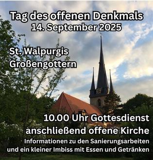 | 10.00 Uhr | Gottesdienst zum Denkmaltag in St. Walpurgis |