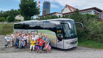 Unsere Busfahrt begann zunächst mit einem mächtigen Gewitterguss. Das hielt uns aber nicht davon ab, die Fahrt nach Schmalkalden fortzusetzen. Dort erwartete uns eine süße Versuchung. Wir besuchten das Nougat-Werk Viba. Einkauf und eine schöne Filmvorführung standen auf dem Programm. Nach dem Mittagessen setzten wir unsere Fahrt zum großen Inselsberg fort. Inzwischen öffnete sich der Himmel mit wunderbaren Sonnenschein.