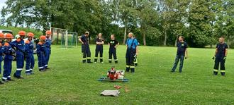 Auf dem Sportplatz war zudem eine Wettkampfstrecke der Jugendfeuerwehr aufgebaut, wie sie auf Kreisebene ausgetragen wird.