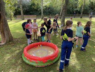Nachdem die Kinder dort eine spitzenmäßige Zeit absolvierten, mussten die Erwachsenen Feuerwehrleute ran. Diese mussten sich - wenn auch knapp - geschlagen geben.