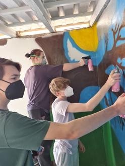 Also ging die Geldsuche los. Es fanden sich die Sparkasse, der Nationalpark Hainich, der Förderverein des Gymnasiums und auch das Kunstprojekt 2.13 selbst gab einige Rabatte, erledigte einige Arbeitsschritte ehrenamtlich. Den Großteil der Kosten fing zudem die private Albrecht-Kiesow-Stiftung ab. Hier wurde ziemlich schnell der Mehrwert für die aktiven Schülerinnen und Schüler erkannt. Denn bei den Vorarbeiten und bei der Durchführung wurden nicht nur curriculare Themen erarbeitet, vertieft, reflektiert und evaluiert; nein, auch die aktive Gestaltung des sozialen Umfelds wurde übernommen. Verantwortung für den öffentlichen Raum! Ein kaum zu überschätzender Gewinn, wird doch der Jugend immer Teilnahmslosigkeit oder gar Zerstörung vorgeworfen.