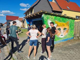 Um das Kunstwerk aber tatsächlich fertigzustellen mussten auch handwerkliche Kniffe vor- und nachbereitet werden. Zimmermeister Werner Giesel kümmerte sich um ein neues Dach samt Dachlatten und Dachkasten. Außerdem entsorgte er Asbestreste und sorgte dafür, dass der Putz fürs Projekt fertig vorbereitet war.
