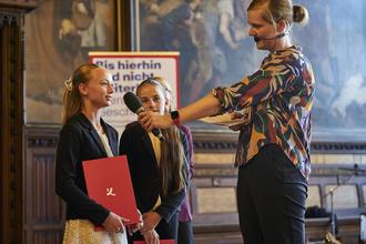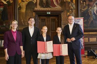 Am 4. September 2025 fand im Erfurter Rathhaus die Verleihung der diesjährigen Landessieger*innen statt. Der Thüringer Ministerpräsident Prof. Dr. Mario Voigt überreichte persönlich die Urkunden an Alma, Paula und Tutor Matthias Schwarzkopf.