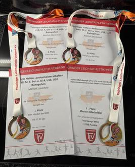Gewohnt zuverlässig die Senioren mit zahlreichen Normerfüllungen für die Deutschen Meisterschaften am 1./2. März in Frankfurt/ Main. Doppeltes Gold jeweils für Christin Heinke (60m Hürden, Weit) und Marion Stedefeld (60m Hürden, Mehrkampf), die dazu noch Silber im Dreisprung und über 200m gewann. Erste Plätze erkämpften weiter Kati Nover (60m), Anke Seise (400m) und mit einem tollen Ergebnis von 11,82m im Dreisprung der AK15 Lorenz Wartmann aus Altengottern. Bei den Männern gab es einen 2. und einen 3. Platz mit sehr starken Zeiten für Marius Bartsch aus Großwelsbach (400m, 51,55; 200m, 22,68). Herausragend und mit großer Steigerung ihrer persönlichen Bestleistungen in der AK14 Frieda Bode. Gold über 3000m (12:13,84min) und Silber über 800m (2.33,82) sind Lohn für ihren enormen Trainingsfleiß und ihr optimistisches Herangehen an sportliche Herausforderungen.