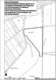 Durch die 6. Änderung soll die Entwicklung einer Photovoltaik-Freiflächenanlage im Bereich des in Aufstellung befindlichen Vorhabenbezogenen Bebauungsplans Nr. 6 „Sonstiges Sondergebiet zur Erzeugung von Sonnenenergie am Kalkberg“ Gemeinde Schönstedt ermöglicht werden.