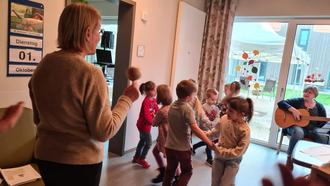 Der DJ Uwe aus Nordhausen sorgte mit alten bekannten Liedern vom Rhein und Wein für gute Unterhaltung. Ganz besonders freuten sich die Bewohner, als der Kindergarten „Sonnenschein“ auftrat und wunderschöne Herbstlieder präsentierte. Sie führten auf Grund der Räumlichkeiten das Programm sogar 2-mal vor, da jeder in die lieblichen frohen Gesichter der Kinder schauen konnte und die Nähe besonders schön war. Der Volkstanz „Die Tiroler sind lustig“ und andere trugen dazu bei, dass man mal alle Sorgen vergessen konnte. Es waren sogar Freudentränen zu erkennen. Alkoholfreier Wein gehörte natürlich dazu, ebenfalls ein großes Stück Pflaumenkuchen, passen zur Jahreszeit.