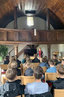 Cordula Breitbarth, vom Förderverein Spittel e.V., begrüßt die Schüler*innen der Klasse 8b und Ihren Geschichts- & Klassenlehrer Matthias Schwarzkopf vor dem St. Andreas Hospital in Großengottern. Sie teilt an diesem Dienstagvormittag, des 24. Septembers 2024, ihre Kenntnisse mit den interessierten jungen Historiker*innen und zeigt, wie viel Geschichte in unserem Denkmal steckt. Die wechselvolle Geschichte des Spittels beeindruckt die Schüler*innnen.