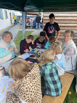In kurzen Filmen konnten die Besucher die Arbeiten bei der Sanierung des Denkmals erleben. Paula und Alma Schwarzkopf zeigten ihren preisgekrönten Film "Ausgegrenzt, aber nicht vergessen. Leprakranke im Spittel Großengottern". Viel Freude bereiteten Selma, Helena und Alma mit ihrem Puppenspiel. Es wurde gebastelt und gemalt. Die größeren versuchten sich beim Bogenschießen und Büchsenwerfen.