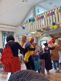 Gegen 16.00 Uhr trafen sich alle verkleideten Kinder mit ihren Eltern und Großeltern, um auf dem geschmückten Saal bei Faschingsmusik zu tanzen und lustig zu sein. Mit einer Polonaise durch den ganzen Saal ging die Party dann richtig los. Es gab verschiedene Tanzspiele, wie zum Beispiel der beliebte Stuhlwalzer, und natürlich auch tolle Preise für die Kinder.
