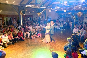 Einen Tanz durch die Epochen, übte auch die Bock-Bande, viele Wochen. Zum Jubiläum haben sie sich nach alten Zeiten gesehnt - so tanzten und ruderten sie mit dem Gummiboot von Jahrzehnt zu Jahrzehnt.