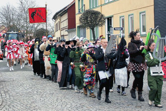 Am nächsten Tag, dem Samstag vor Rosenmontag, folgte 14:11 Uhr der alljährliche Faschingsumzug. In ausgelassener Urlaubsstimmung zogen die treuen ortsansässigen Teilnehmer und unsere Freunde des VCCM aus Mülverstedt zum Rathaus. Dort übergab erstmals Tommy Born als Rathaus-Chef den Schlüssel an das Prinzenpaar; gekonnt eingeleitet von Ortsteilbürgermeister Thomas Schneider.