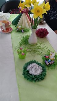 Anschließend banden wir noch meterlange Stricke zur Dekoration. Zufrieden, aber auch geschafft, gingen wir nach Hause und hoffen, dass wir unseren Bürgern des Ortes mit der Osterkrone eine Freude bereiten.